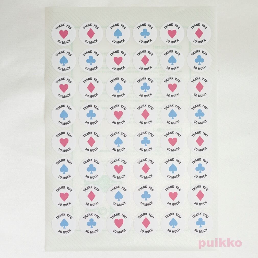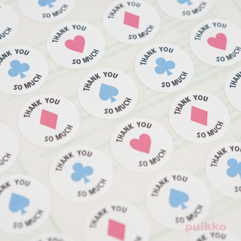 ハート、ダイヤ、スペード、クラブの各柄をあしらったサンキューシールです。