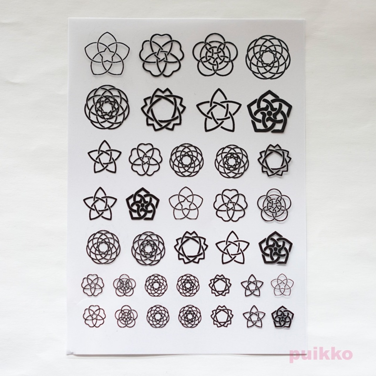 「釜敷き」と名のついた家紋の中からセレクトした図柄をOHPフィルムにモノクロで印刷しました。