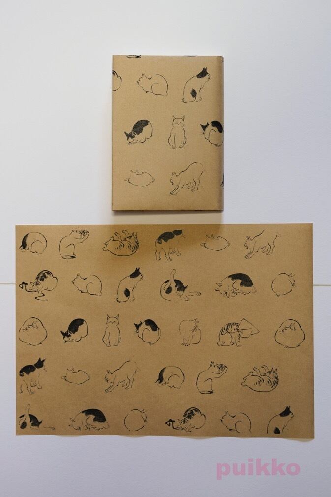 このブックカバーでは、「浮世画譜」に描かれた猫のスケッチを素材に5点のブックカバーを作りました。