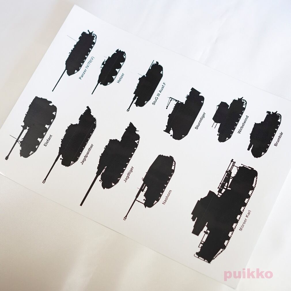 シルエットシール 第二次世界大戦時のドイツの戦車のシルエット11種をシールにしました。