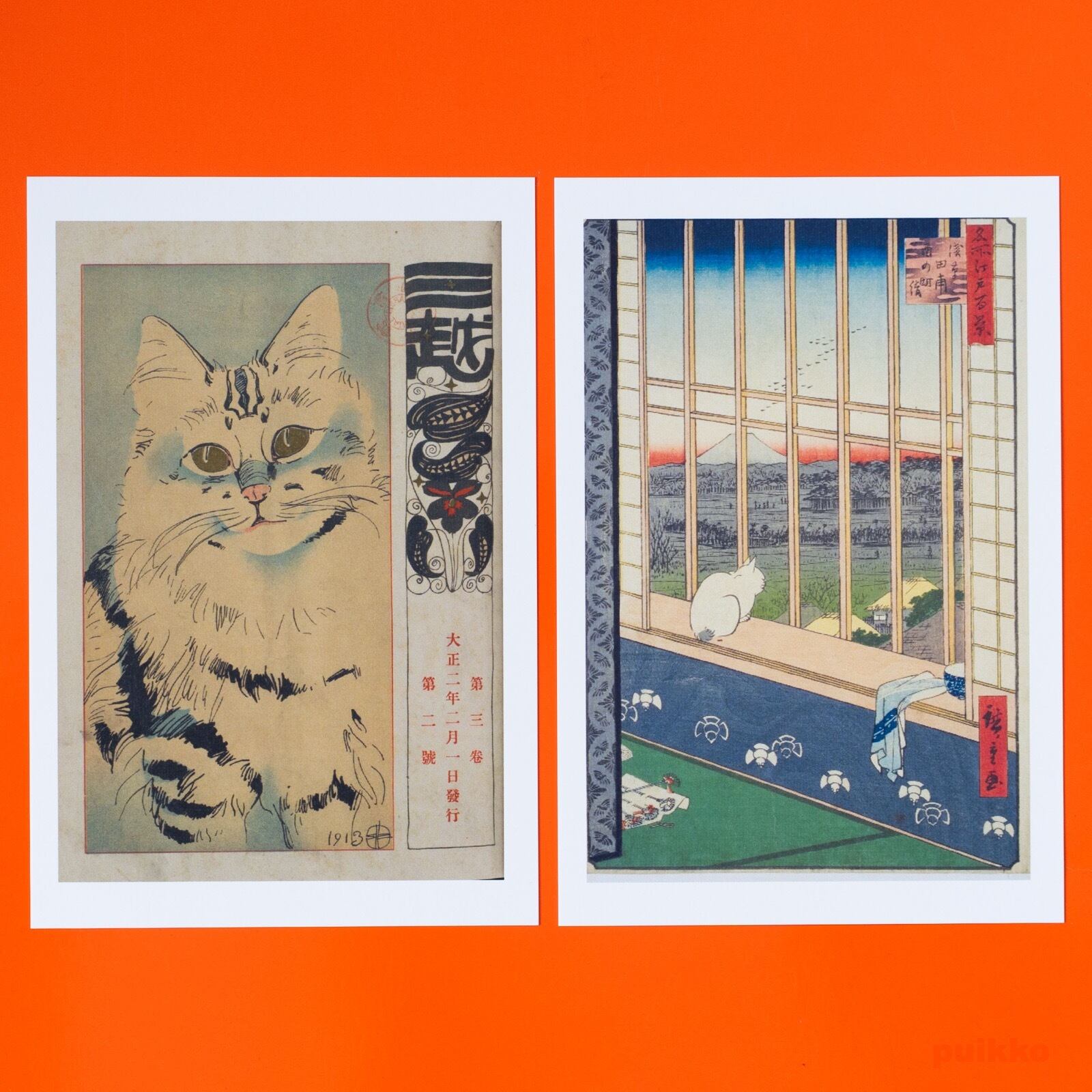 猫をモチーフした日本の絵画5点をポストカードにしました。