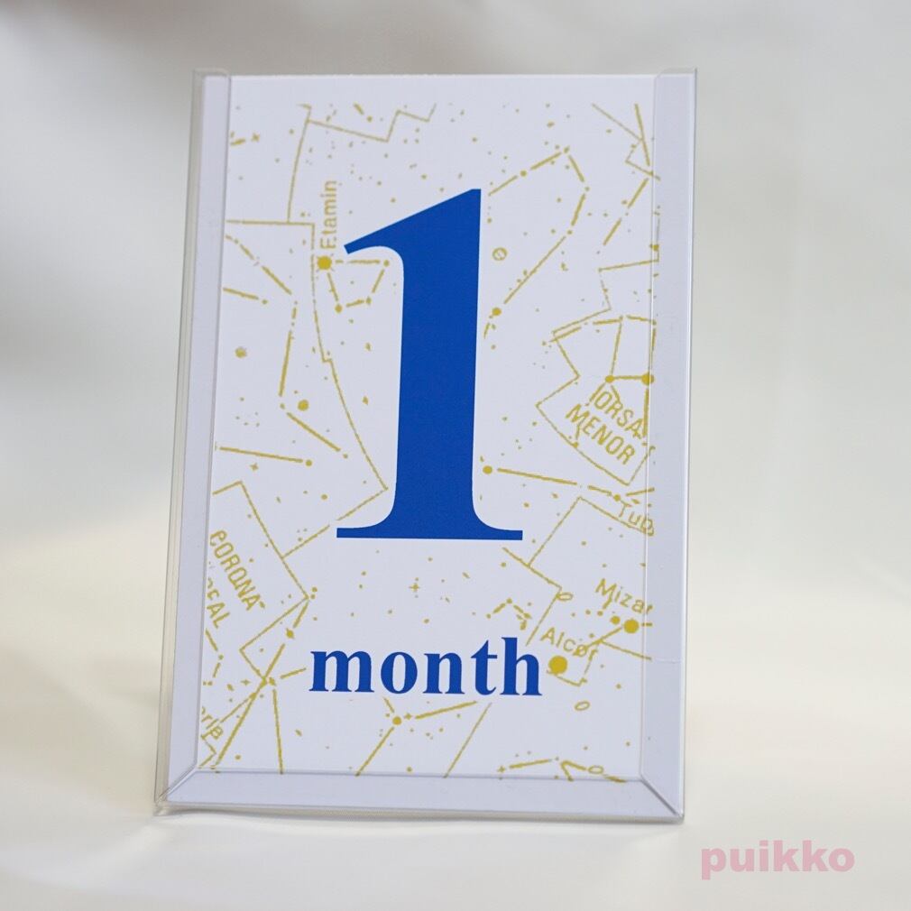 生後1か月ごとに、赤ちゃんにこのカードを添えて撮影してください。毎月写真を撮ることによって赤ちゃんの成長がよくわかり、いい記念になります。また、撮影後の写真整理にも使えます。