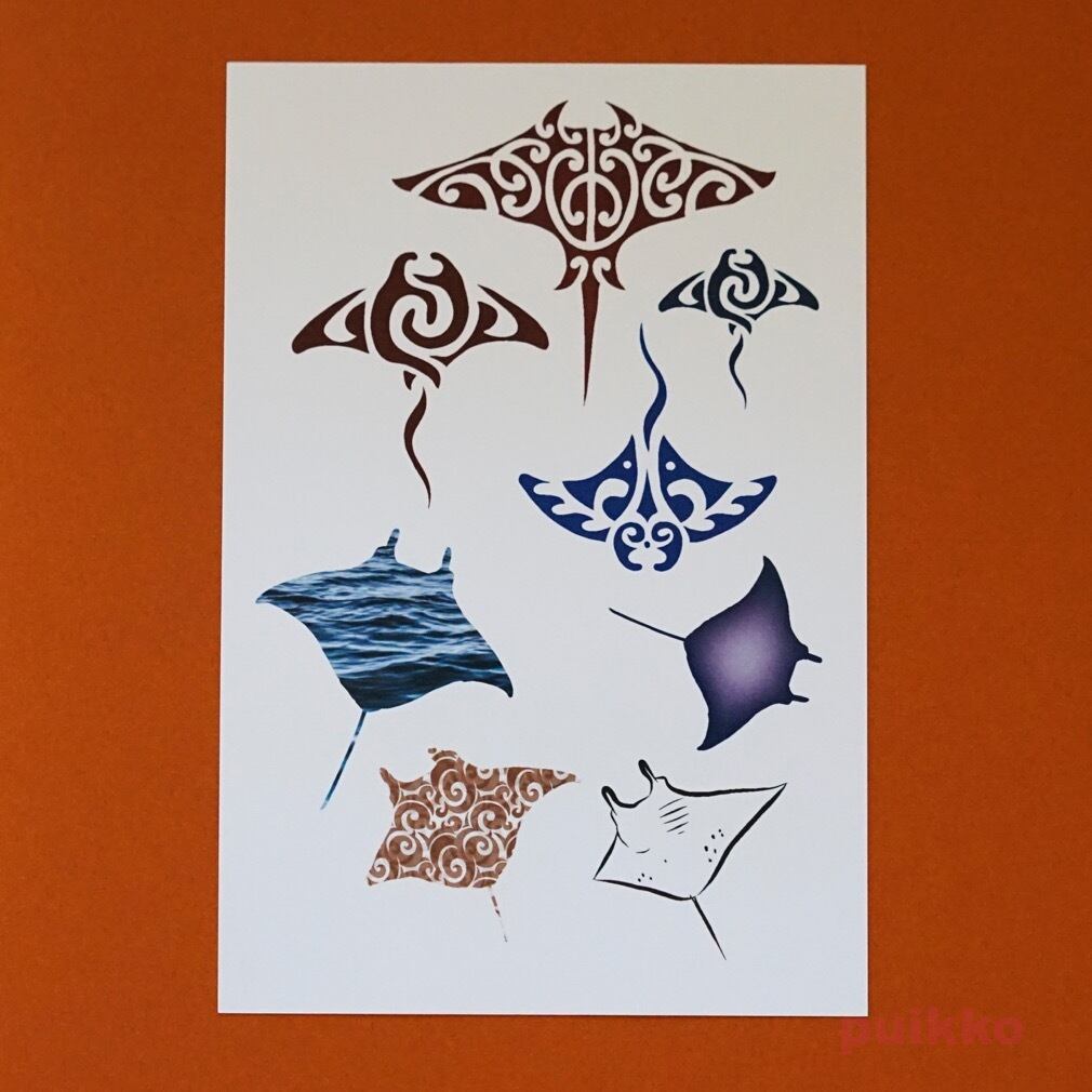 マンタの図柄8点をサイズ違いでまとめた転写タトゥーシールです。