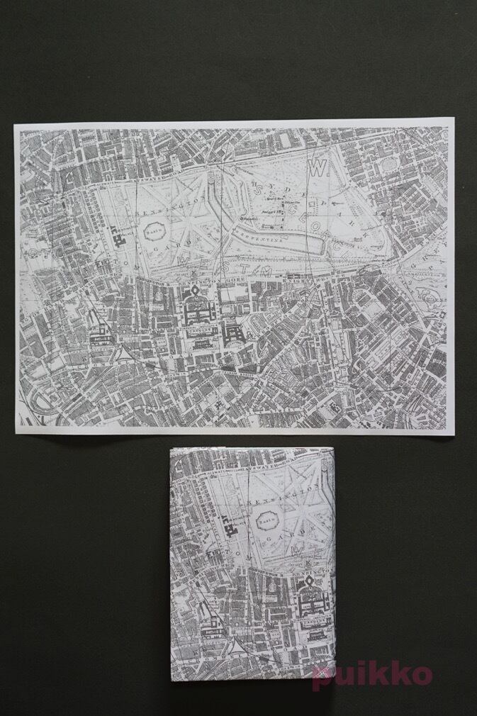 イギリス ロンドンの古地図を紙製ブックカバーにしました。