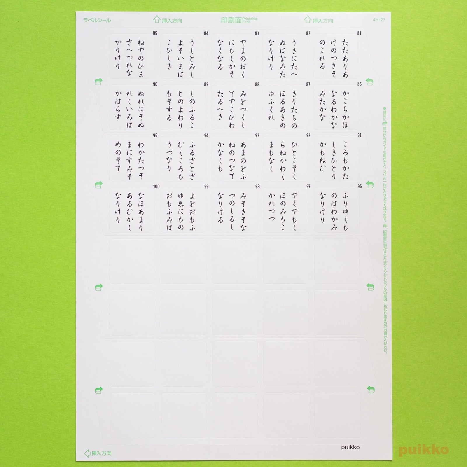 百人一首の下の句をラベルシール(一辺30mmの角丸シール)に印刷しました。