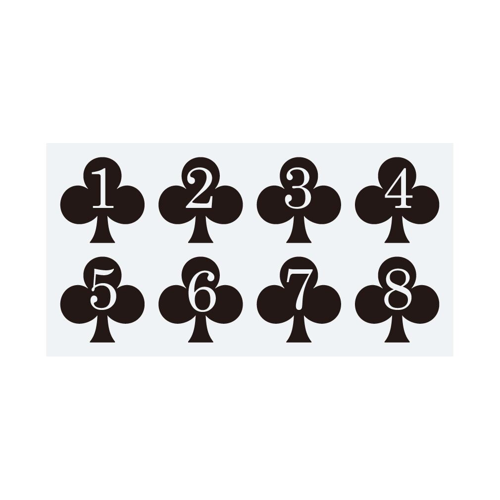 トランプの記号(スート)のうち、クラブのマークに数字の1〜8を組み合わせてステッカーにしました。