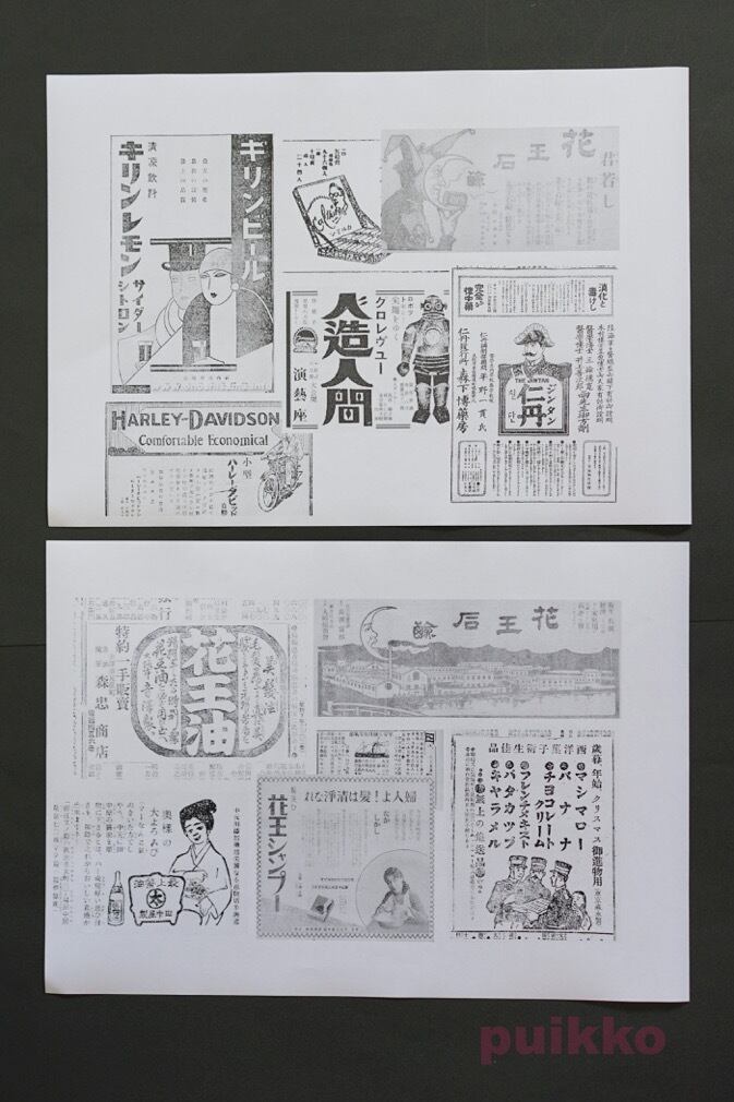 明治、大正、戦前昭和の新聞に掲載された広告をコラージュしました。