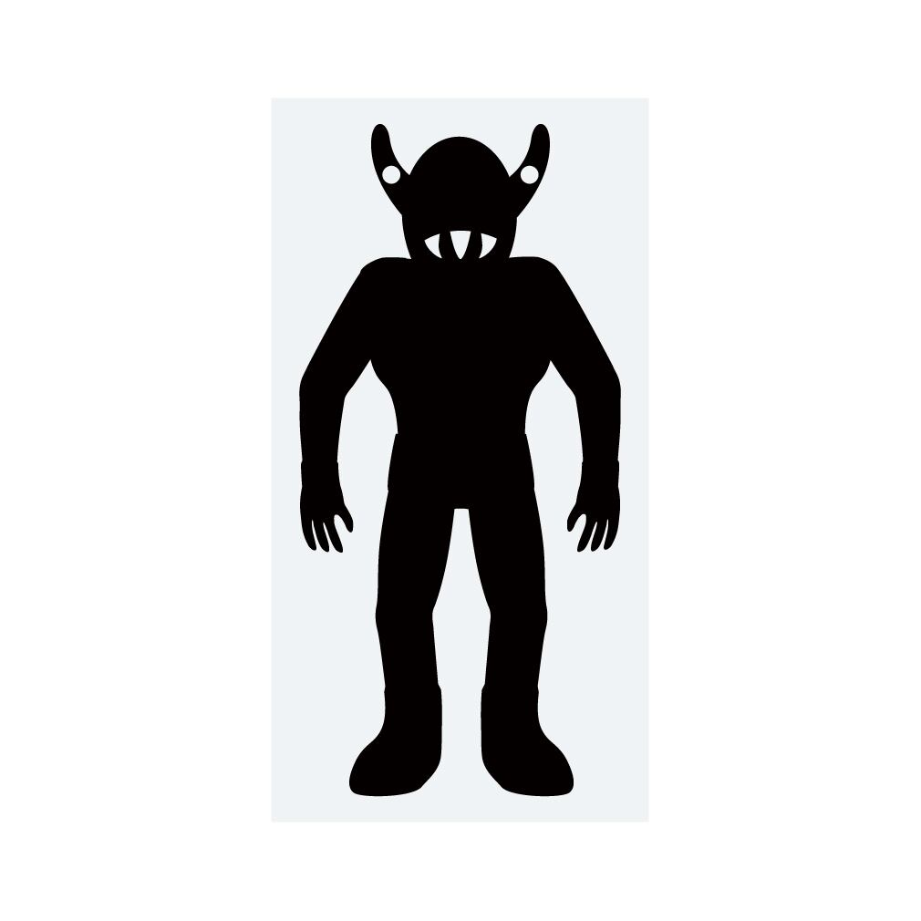 日本三大UFO事件のひとつ、甲府事件で目撃された宇宙人のシルエットのステッカーです。