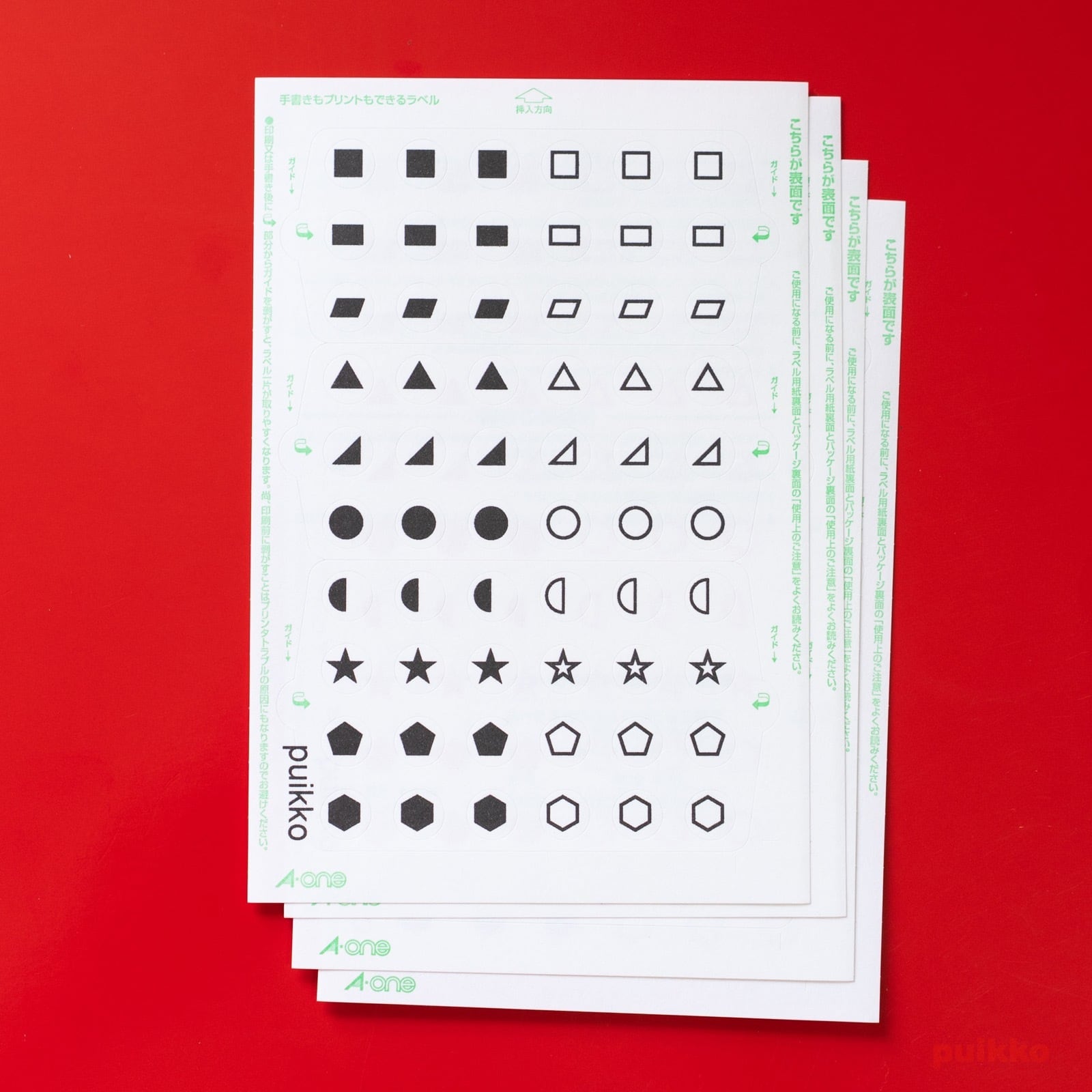 さまざまな図形の絵柄をラベルシール(直径9mmの丸シール)に印刷しました。