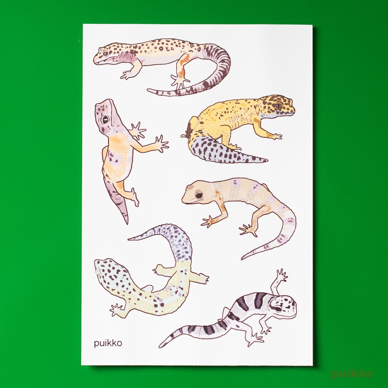 ペットとしても人気のヤモリ レオパードゲッコー(ヒョウモントカゲモドキ)のイラスト6種を収録しました。