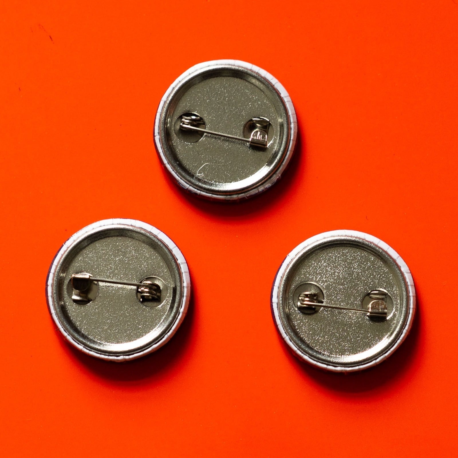 缶バッジの取り扱いは慎重に行なってください。針が付いているので思わぬケガや事故の原因となります。