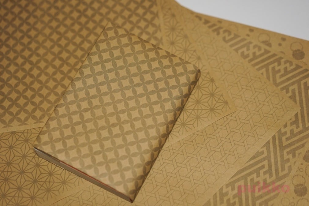 和柄のパターンを一面に印刷した紙製ブックカバーです。