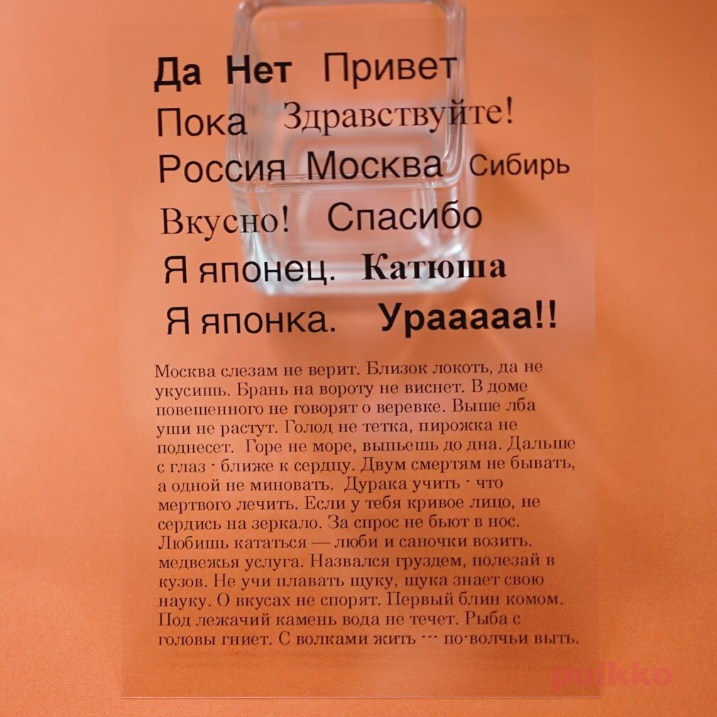ロシア語の単語と文章をOHPフィルムにモノクロ印刷しました。