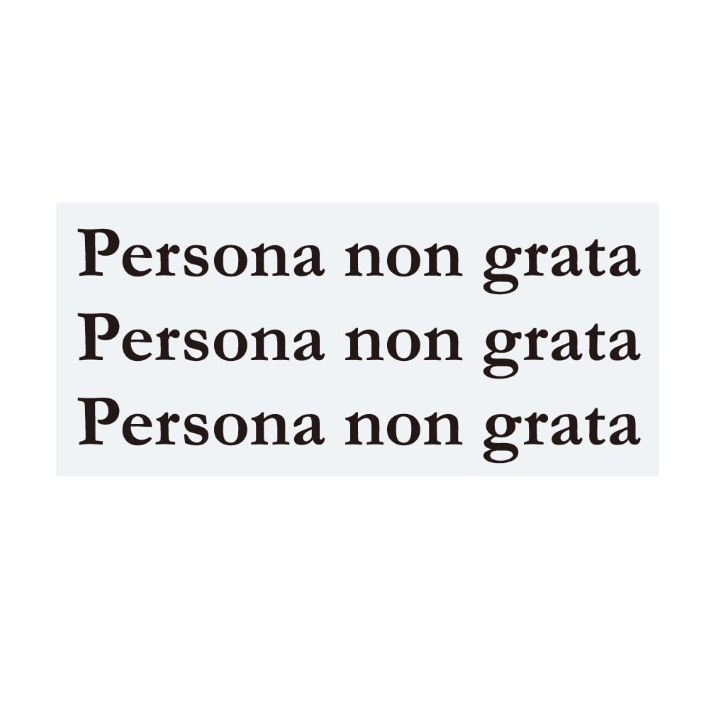 ラテン語「ペルソナ・ノン・グラータ」という文字のステッカーです。同じもの3片入り。