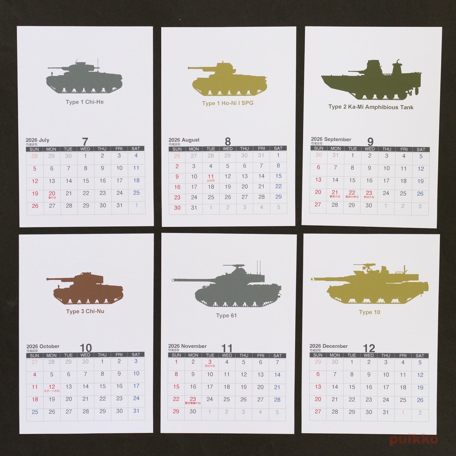 日本の戦車のシルエットを使った卓上カレンダーです。