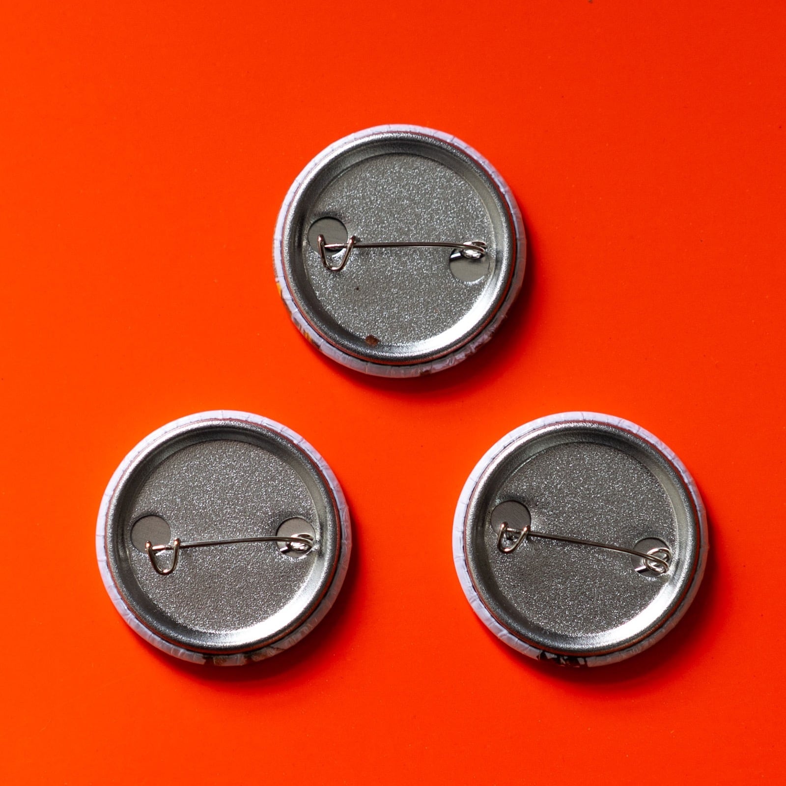 缶バッジの取り扱いは慎重に行なってください。針が付いているので思わぬケガや事故の原因となります。