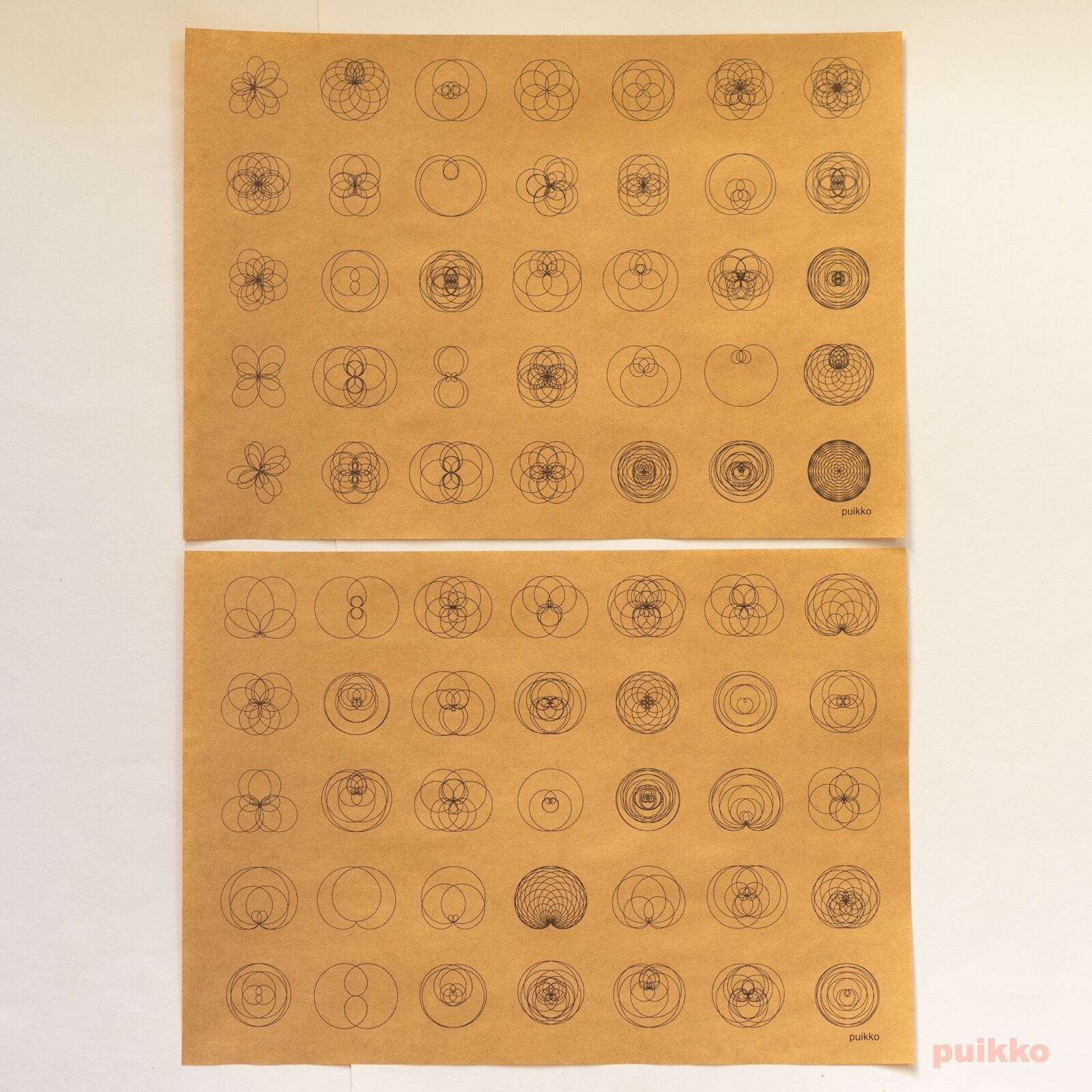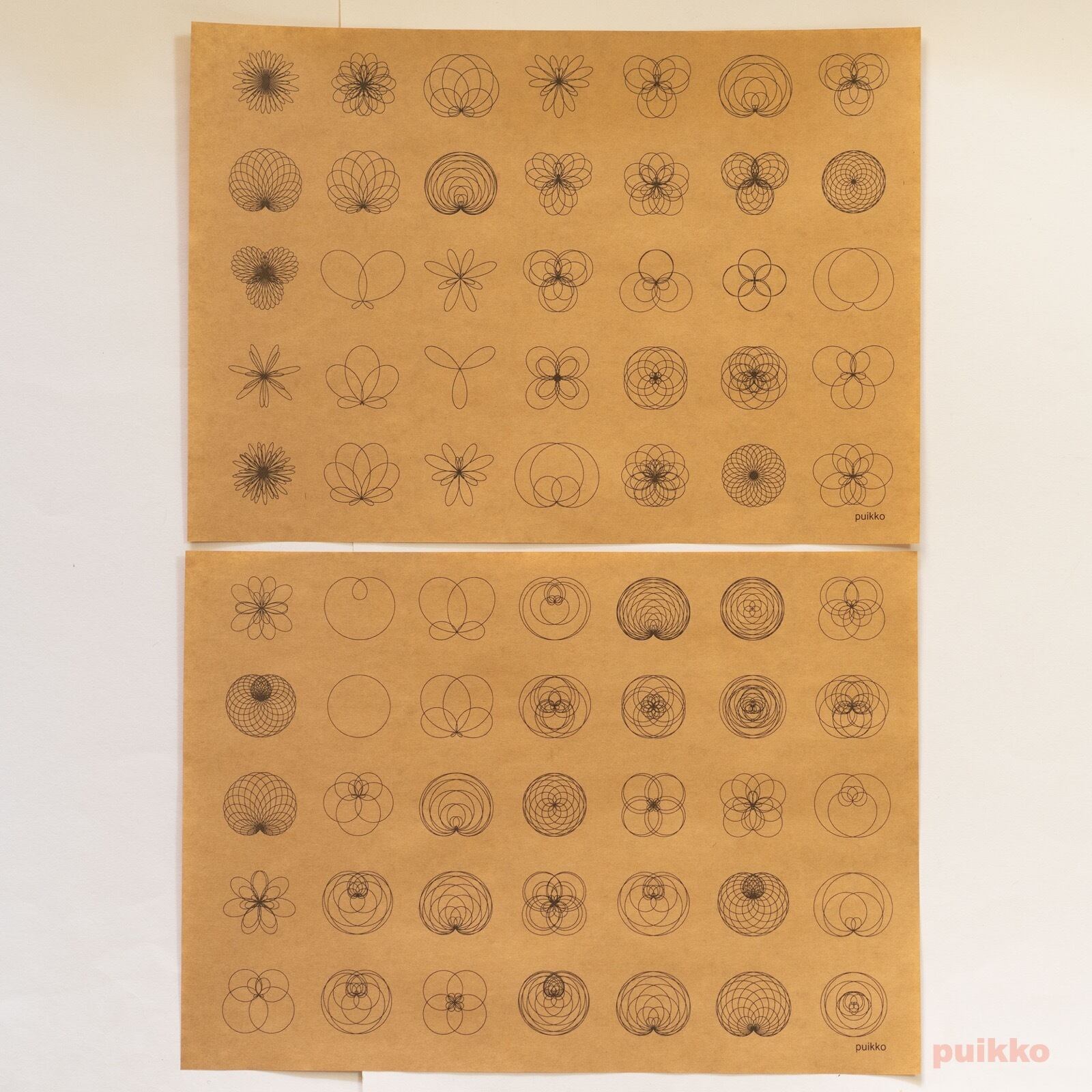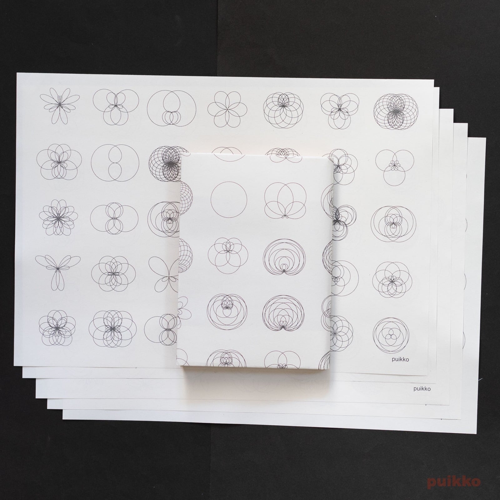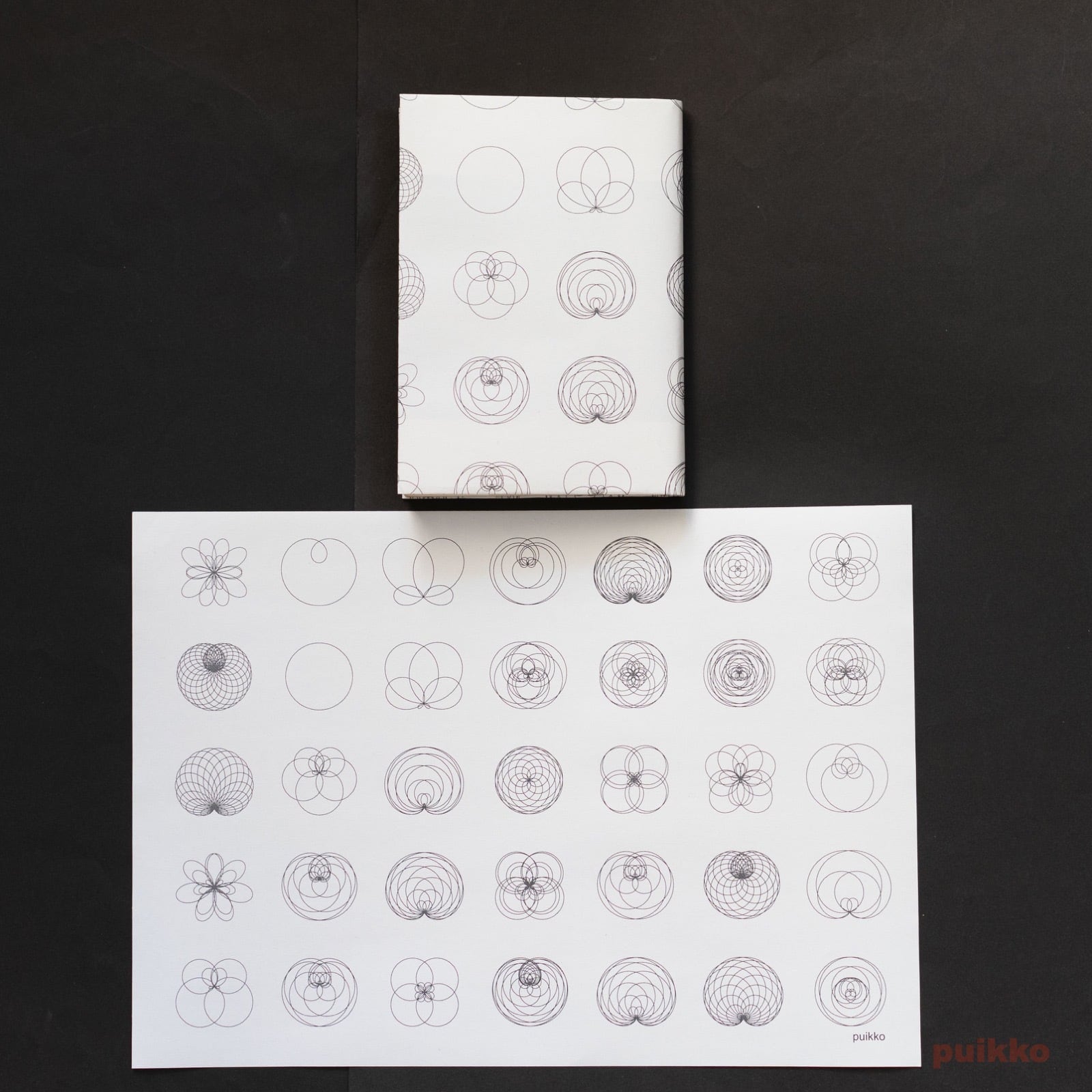 さまざまなバラ曲線のグラフの絵柄の紙製ブックカバーです。