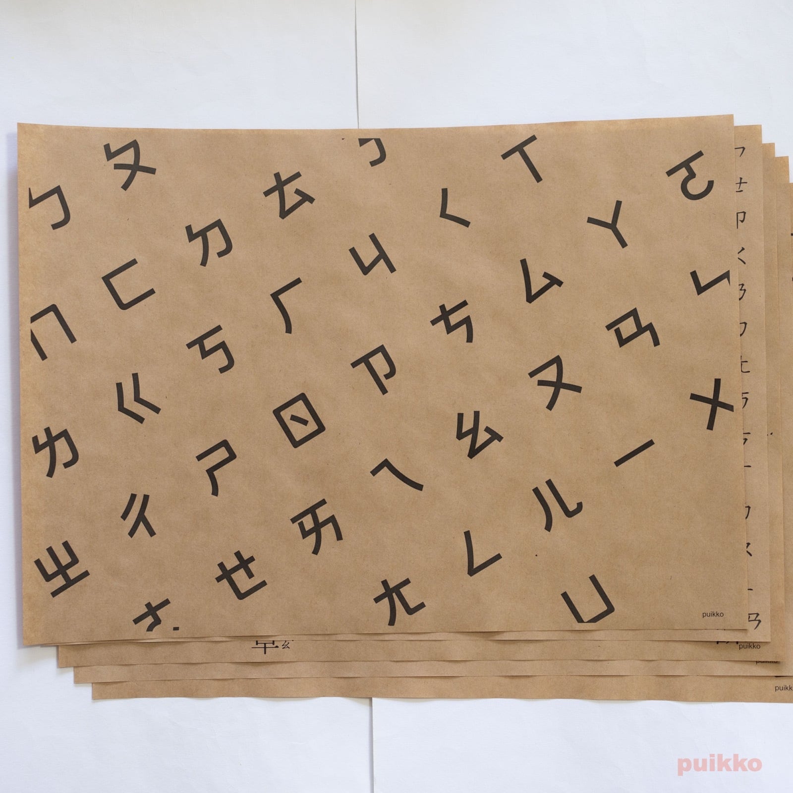 使用した用紙はクラフト紙(ブラウン)と再生紙(コピー紙よりやや厚く、黄味がかった白)の2タイプ。お好みのほうをお選びください。ブックカバーとして使うだけでなく、小物の包装紙、写真撮影の背景紙などアイデア次第でいろいろ活用できます。折らずに発送します。