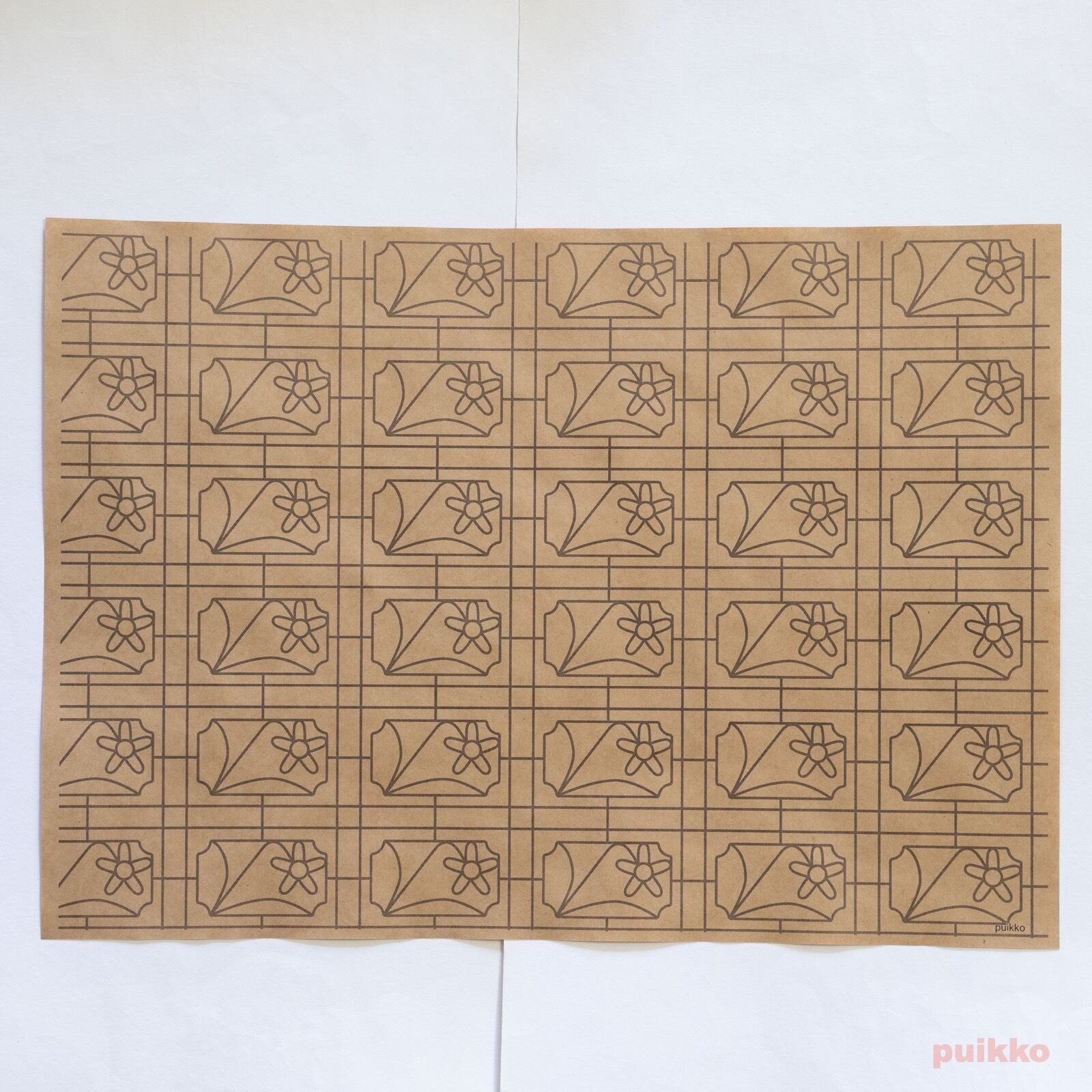 使用した用紙はクラフト紙(ブラウン)と再生紙(コピー紙よりやや厚く、黄味がかった白)の2タイプ。お好みのほうをお選びください。ブックカバーとして使うだけでなく、小物の包装紙、写真撮影の背景紙などアイデア次第でいろいろ活用できます。折らずに発送します。