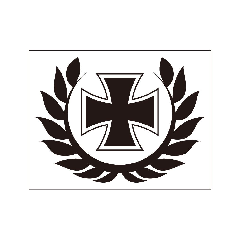 鉄十字を月桂冠(ローレルの花輪)で囲んだ絵柄のステッカーです。