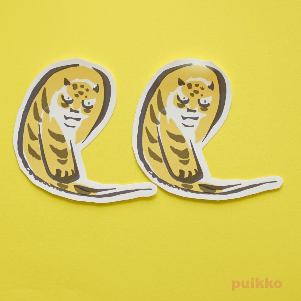 江戸時代中期の浮世絵師・鍬形蕙斎(くわがたけいさい)こと北尾政美が描いたイラスト見本帳「鳥獣略画式」。シンプルな線で描かれた獣や鳥の絵がなんとも愛らしく、葛飾北斎の「北斎漫画」にも影響を与えたといわれています。この中から虎の絵をトレースし、ステッカーにしました。同じ絵柄の2枚組セットです。