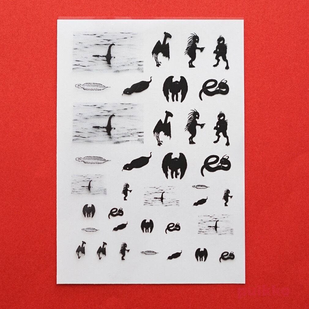 未確認生物(UMA)の写真、イラストをOHPフィルムにモノクロ印刷しました。