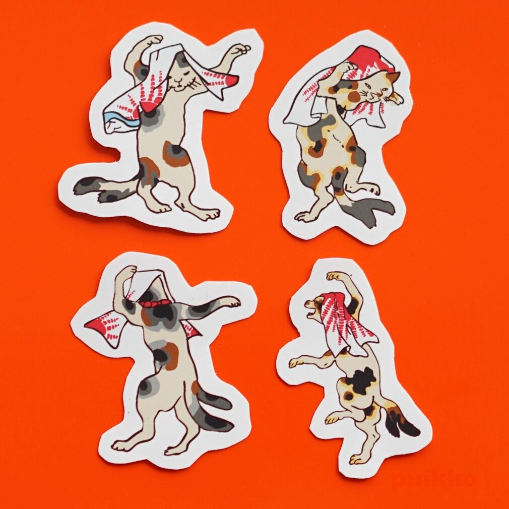 歌川国芳が描いた踊る猫又の絵の吸着シールです。違う絵柄4枚で1セットとなっています。
