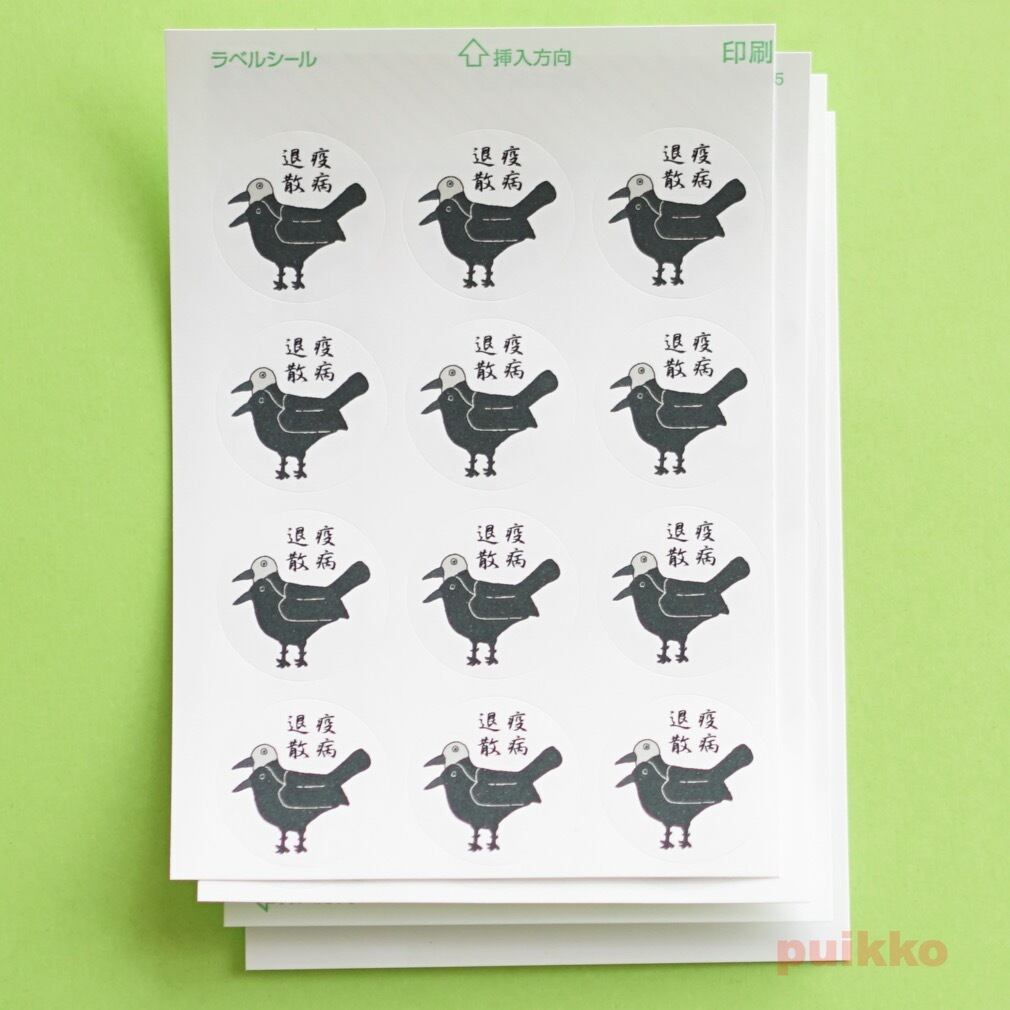 疫病退散! ヨゲンノトリの絵をラベルシール(直径30mmの丸シール)に印刷しました。