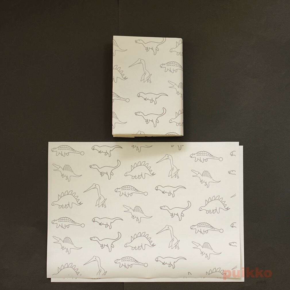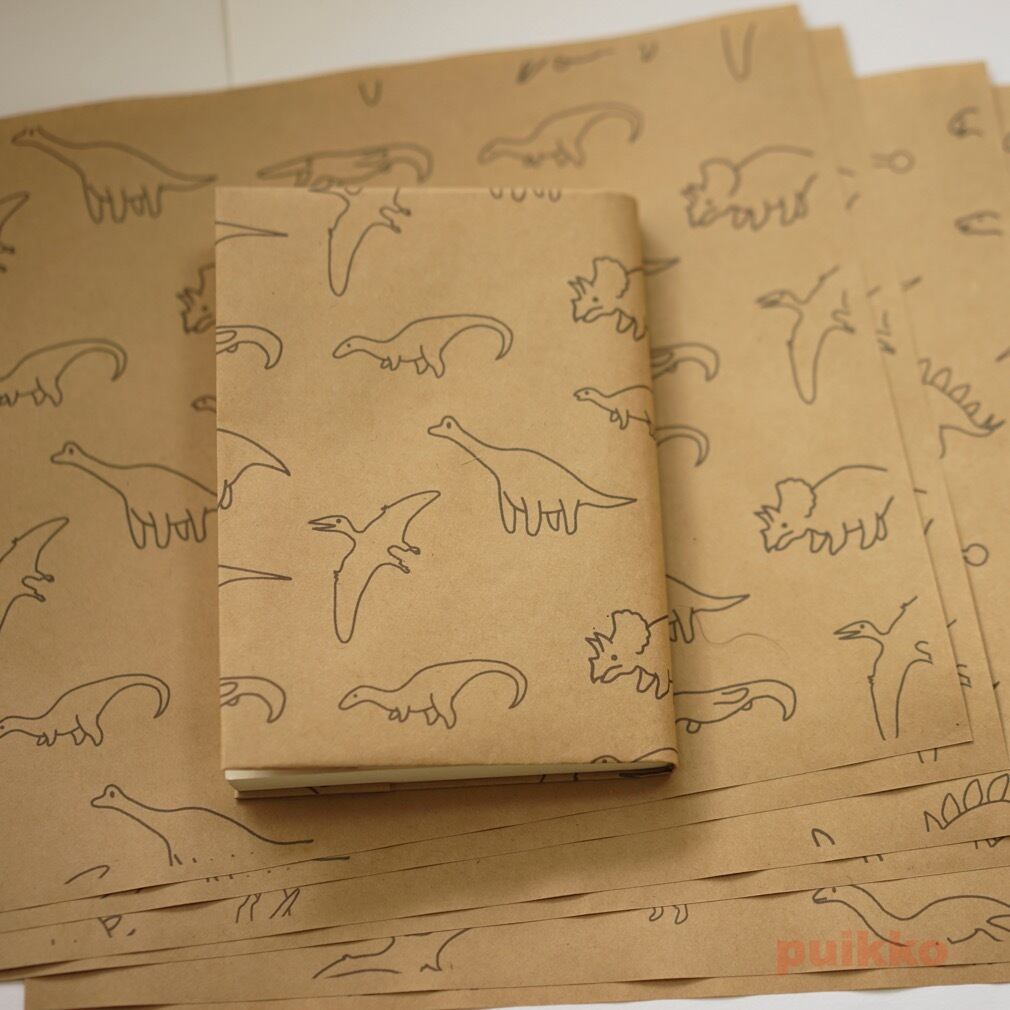 かわいい恐竜のイラストを並べて紙製ブックカバーにしました。