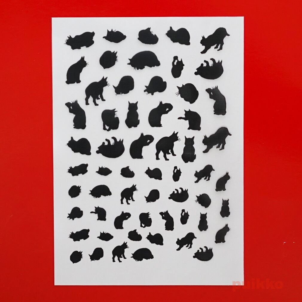 歌川広重が「浮世画譜」第3巻で描いた猫のスケッチをシルエットにしてOHPフィルムにモノクロ印刷しました。