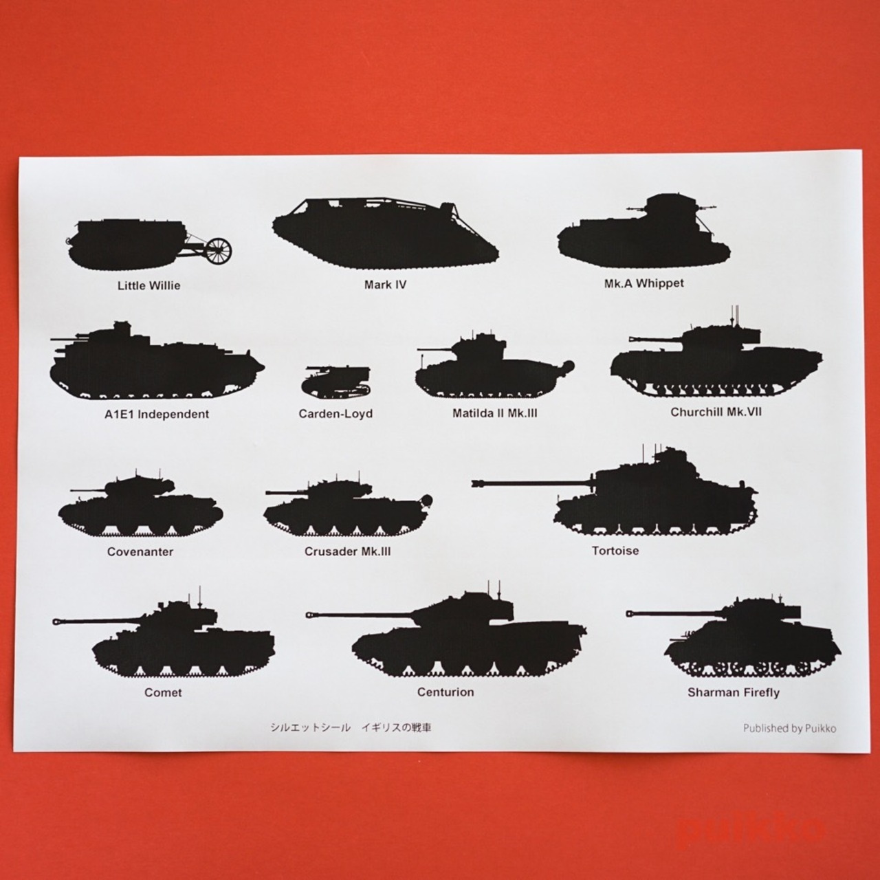 シルエットシール 第二次世界大戦前、第二次世界大戦中のイギリスの戦車のシルエット13種をシールにしました。