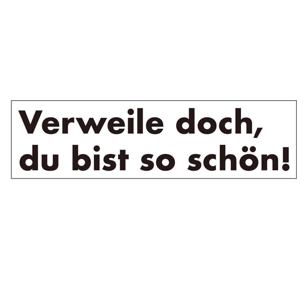 ゲーテ「ファウスト」の中で出てくる "Verweile doch, du bist so schön!"「時よ止まれ、お前は美しい!」というフレーズを原文のドイツ語でステッカーにしました。このフレーズ、ドイツ語で最も有名な言葉かもしれません。「ファウスト」を日本で初めて翻訳した森鴎外の訳では「(刹那よ)止まれ、お前はいかにも美しいから」となっています。「時よとまれ、君は美しい/ミュンヘンの17日」としてミュンヘンオリンピック記録映画の邦題にも使われています。