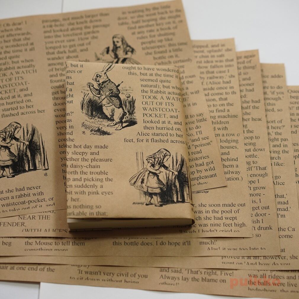 「不思議の国のアリス」の原文と挿絵を使った紙製ブックカバーです。