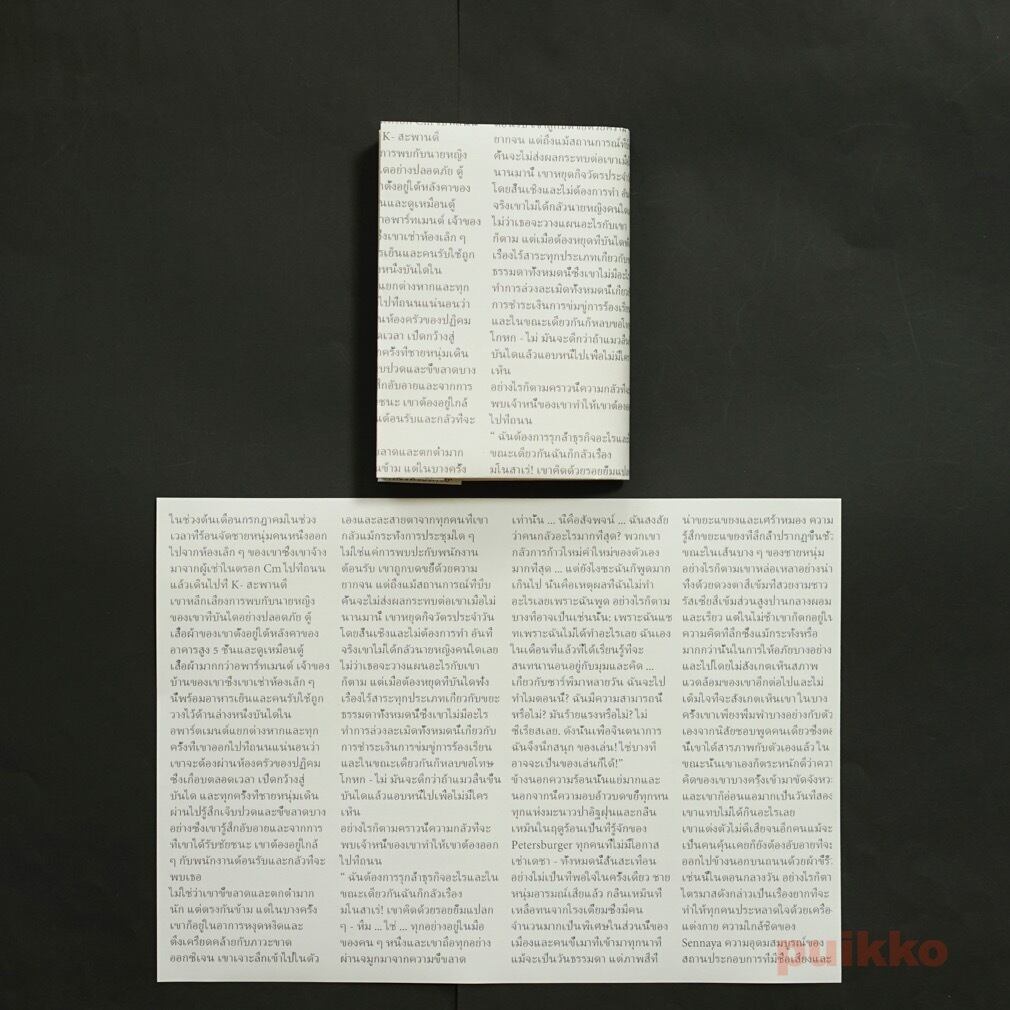 5カ国語のテキストをモノクロ印刷した紙製ブックカバーです。