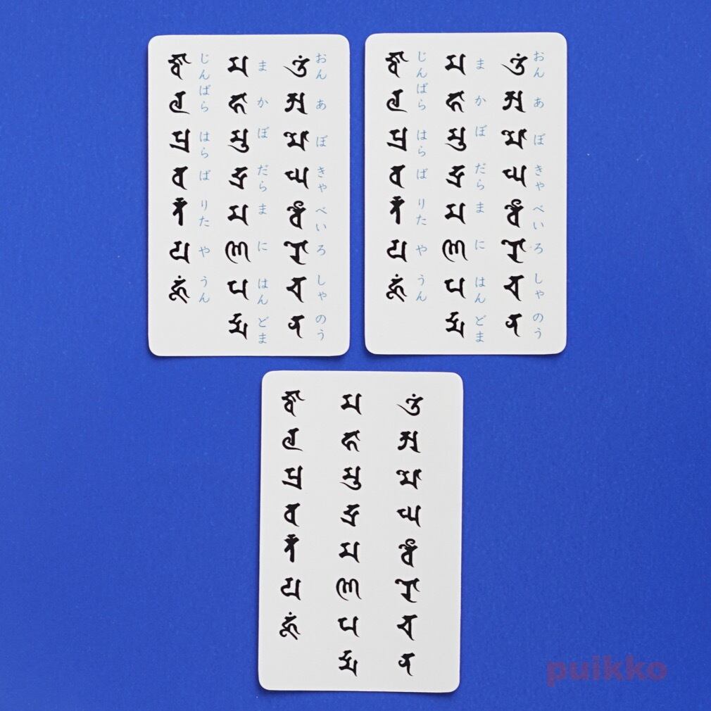 なお、梵字に添えてあるひらがなは真言宗(智山派以外)の唱え方です。真言宗智山派および天台宗では異なっています。