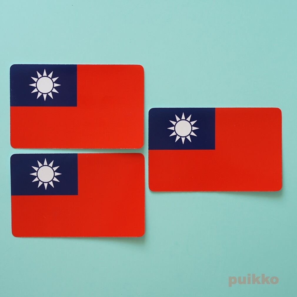 台湾の国旗(青天白日満地紅旗)のシールです。ICカードやクレジットカードと同じサイズです。角は少しだけ丸みがあります。