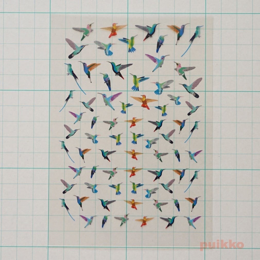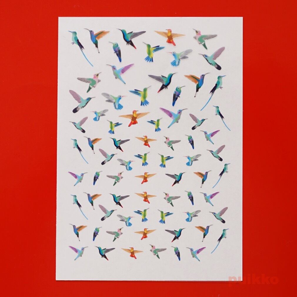 「羽ばたく宝石」とも形容される世界最小の鳥、ハチドリのカラーイラスト10種を2種類のサイズで収録しました。