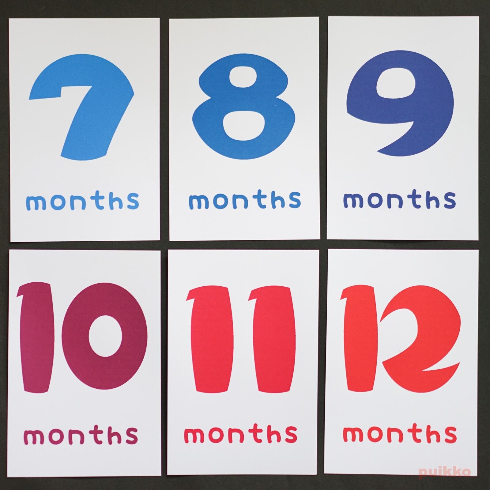 生後1か月ごとに、赤ちゃんにこのカードを添えて撮影してください。毎月写真を撮ることによって赤ちゃんの成長がよくわかり、いい記念になります。また、撮影後の写真整理にも使えます。