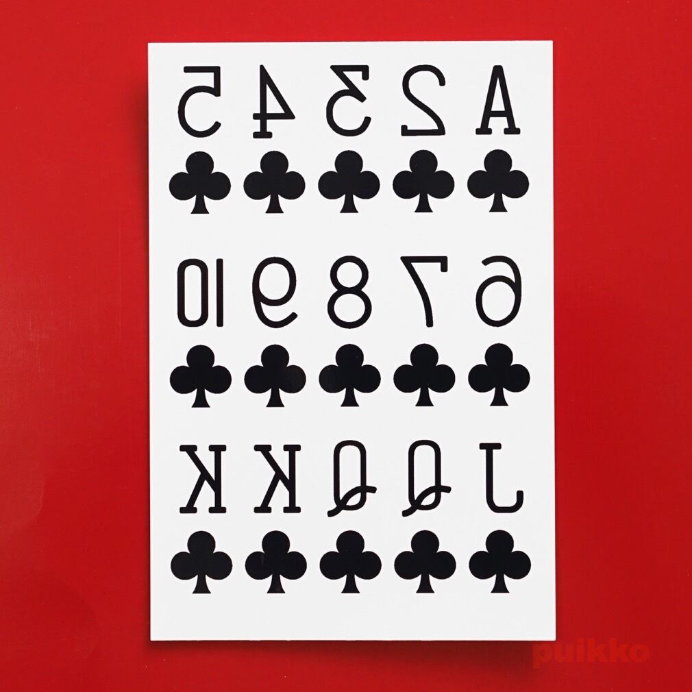 トランプのA〜Kの13種と絵柄マーク クラブの組み合わせを収録しました。