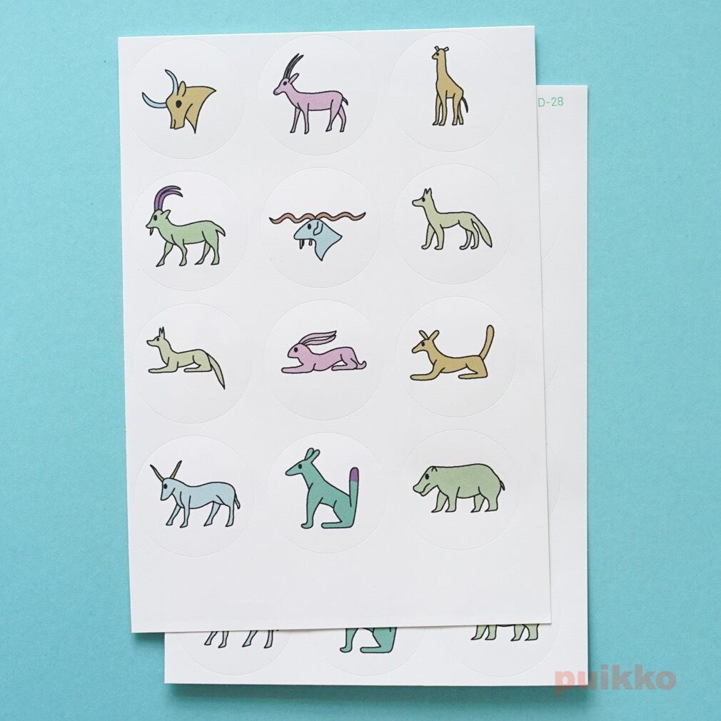 多数のヒエログリフのうち、猫、ゾウ、オリックス、ライオンなど動物を描いたもの24種を選び、ちょっとだけかわいくアレンジして彩色しました。