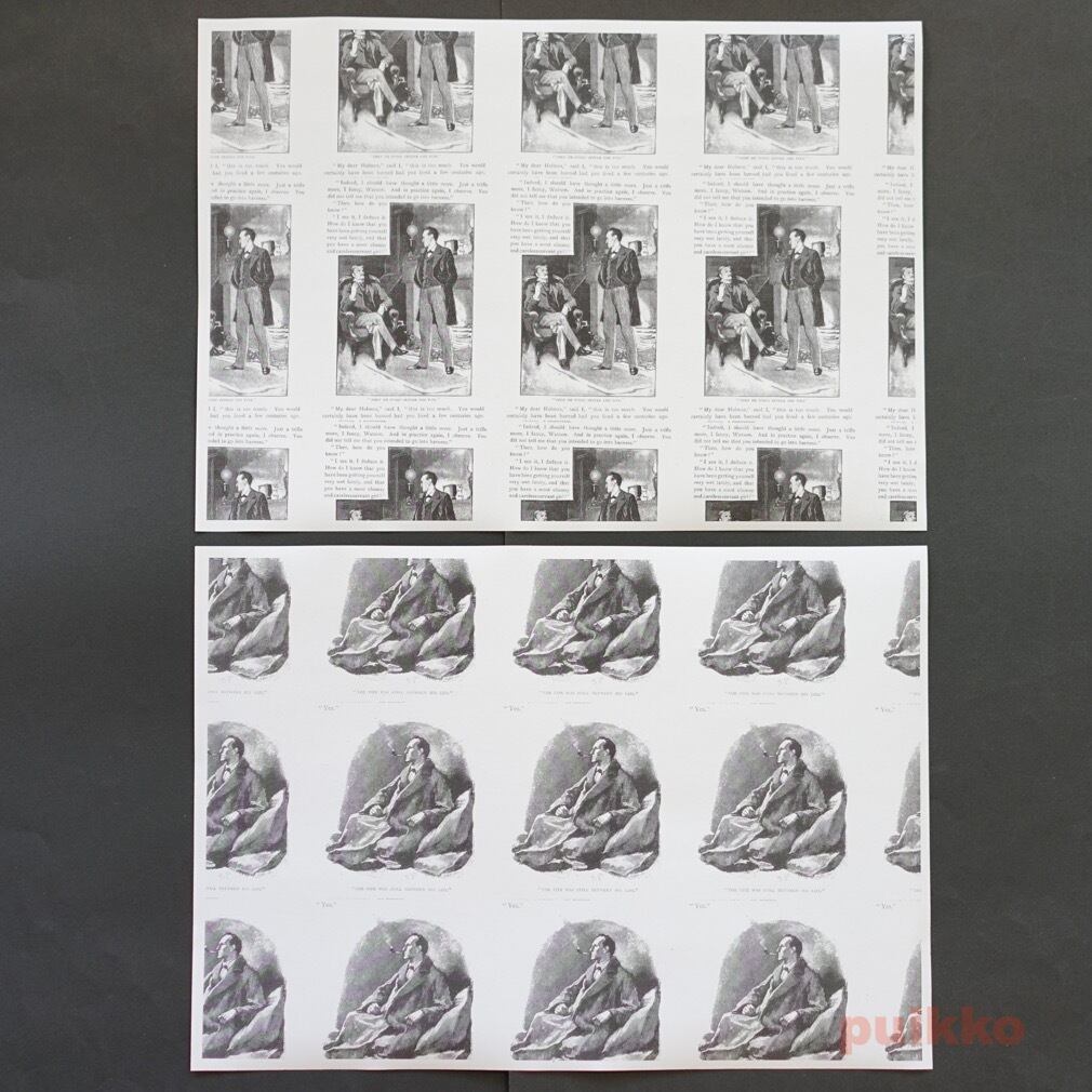 また、しおりも同じくシドニー・パジェットによって描かれたシャーロック・ホームズの挿絵を素材に4枚作りました。