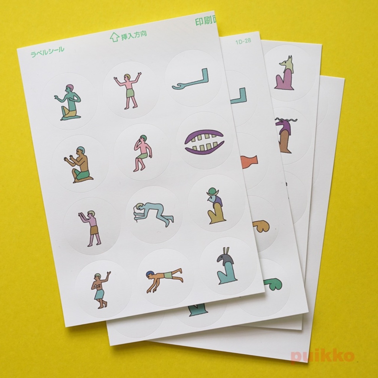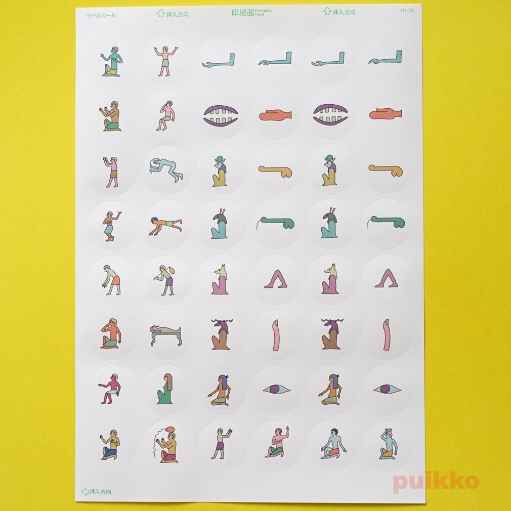 古代エジプトで使われていた文字ヒエログリフをラベルシール(直径30mmの丸シール)に印刷しました。