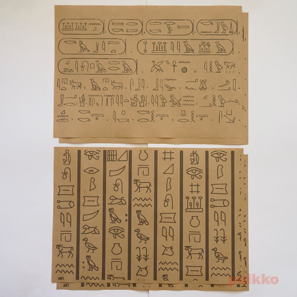 また、しおりはヒエログリフによって書かれた単語を素材に4枚作りました。