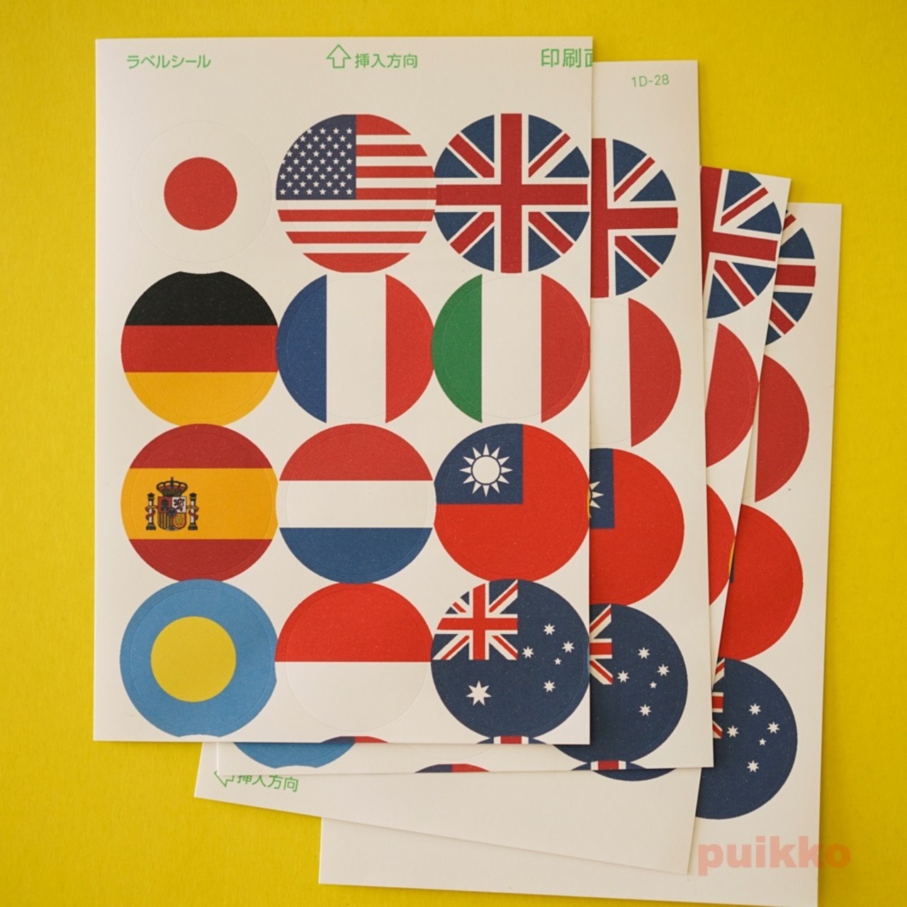 世界12カ国の国旗をラベルシール(直径30mmの丸シール)に印刷しました。