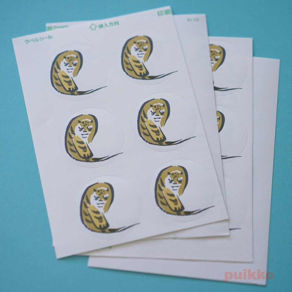 元祖ゆるカワ!? 「鳥獣略画式」に描かれている虎の絵をラベルシール(直径30mmの丸シール)に印刷しました。