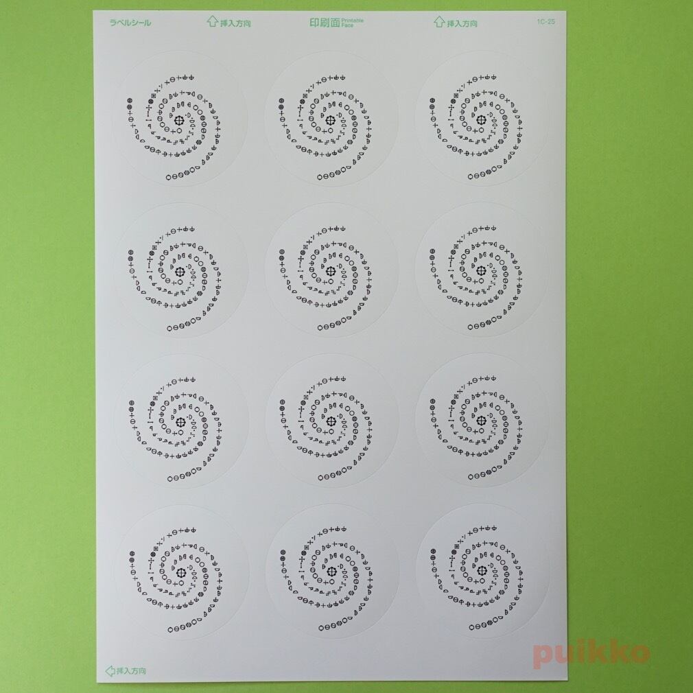 市販のインクジェットプリンタを使って印刷しているので、図柄がシールの円の中心からずれていることがあります。あらかじめご了承ください。