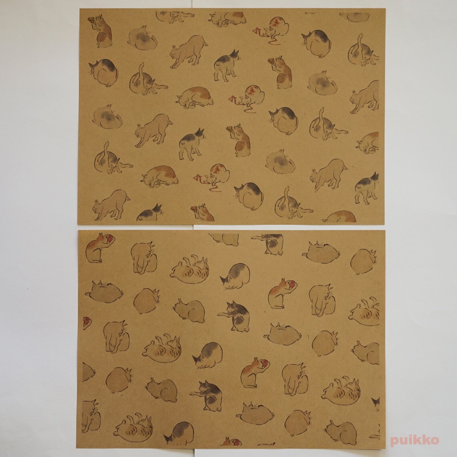 歌川広重が「浮世画譜」第3巻で描いた猫のスケッチを紙製ブックカバーとしおりのセットにしました。