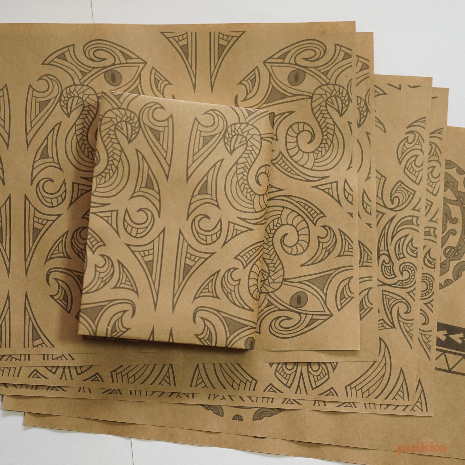 マオリ族のタトゥーをモチーフにした絵柄の紙製ブックカバーです。