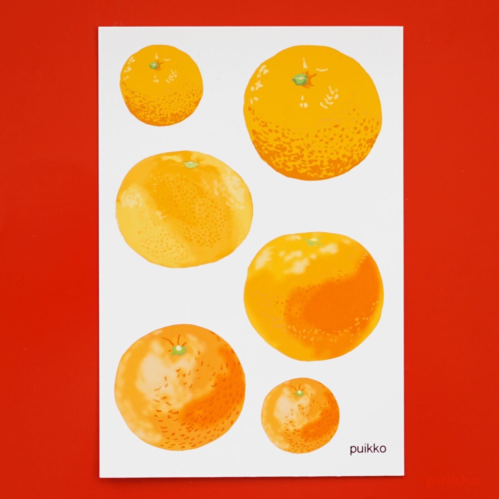 みかんのイラスト4種をサイズにバリエーションをつけて収録しました。