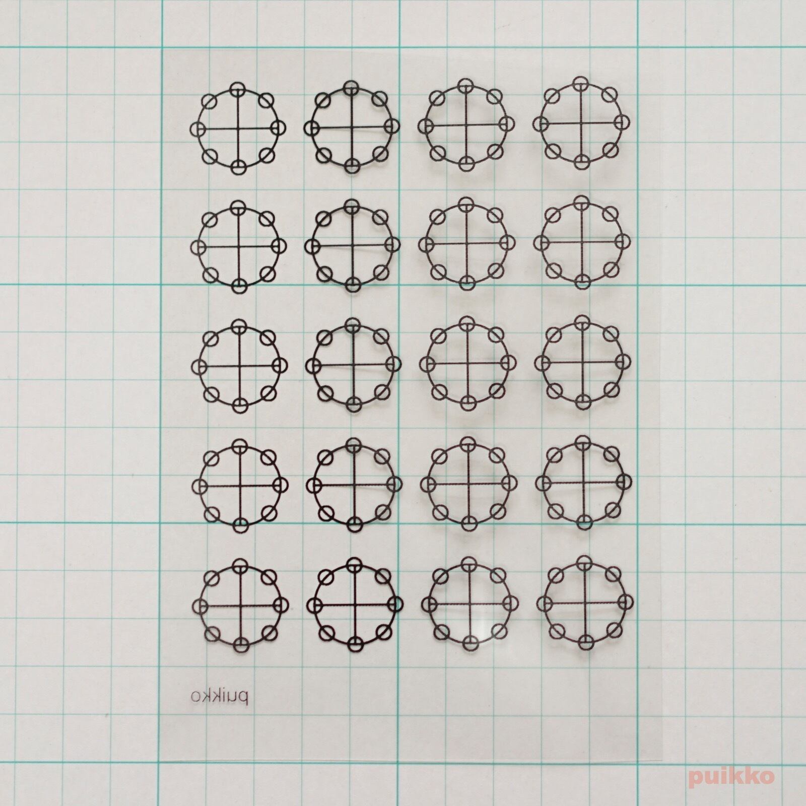 市販のインクジェットプリンタにOHPフィルムを使って印刷しているので、精密さに欠けるところがあります。